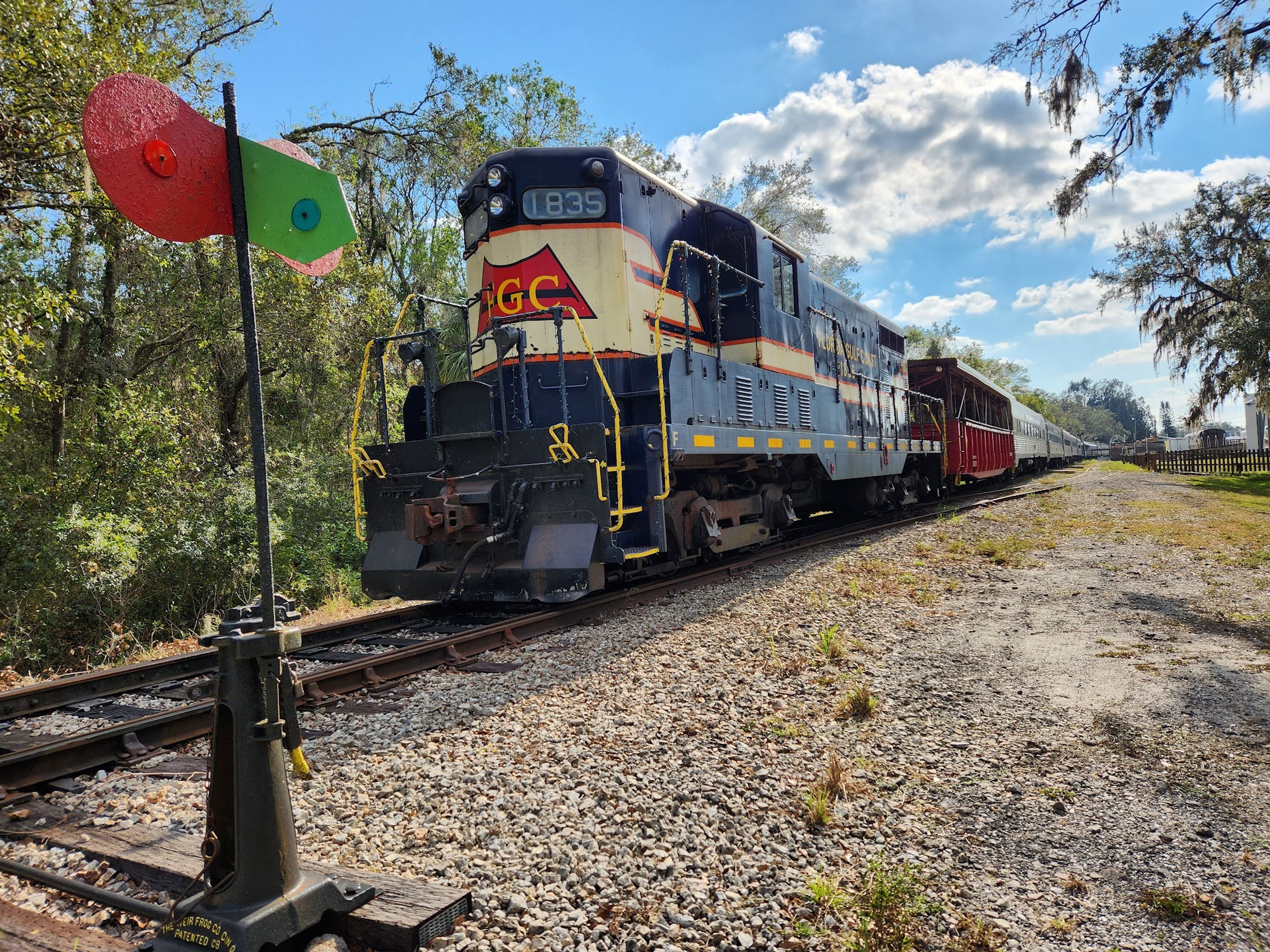 O Museu Ferroviário da Costa do Golfo da Flórida mantém uma coleção de locomotivas, vagões de passageiros e equipamentos em uma linha histórica.