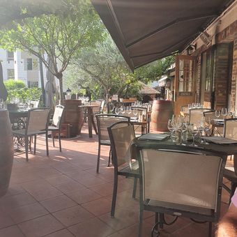 O restaurante está localizado ao lado do vinhedo de Isséen, onde os clientes podem desfrutar das refeições sob figueiras e oliveiras no terraço.