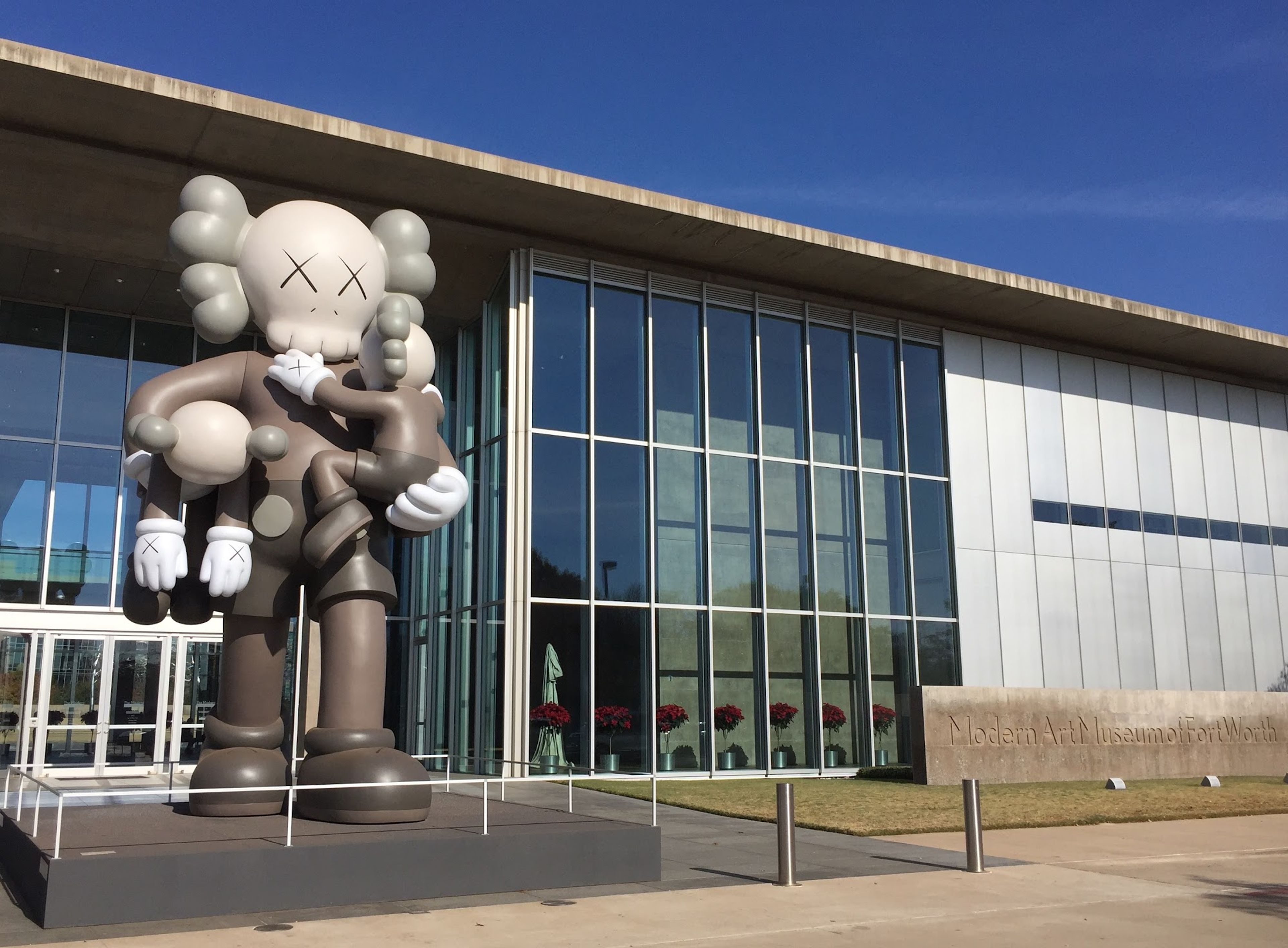 O Museu de Arte Moderna de Fort Worth exibe obras do pós-guerra em um edifício com paredes de concreto e painéis de vidro.