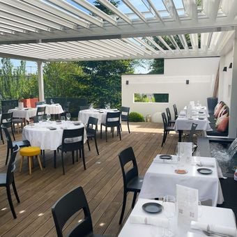 O cardápio muda de acordo com as estações, oferecendo trufas negras no inverno e incorporando produtos locais em pratos como rodovalho com mousseline de coral.
