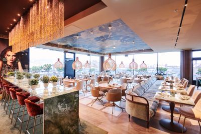 Roof Garden, Restaurante francês no terraço com vista no centro de Zurique, Suíça.