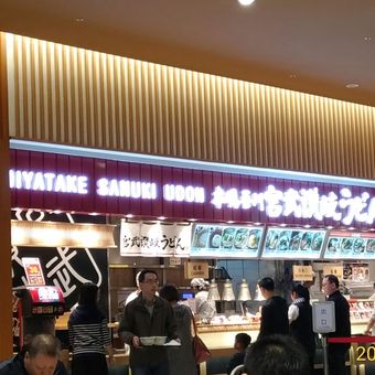 O restaurante fica no segundo andar do centro comercial e é facilmente acessível pela escada principal ou elevador. Os assentos estão dispostos de forma casual, permitindo refeições rápidas, e há espaço suficiente para ficar na fila.