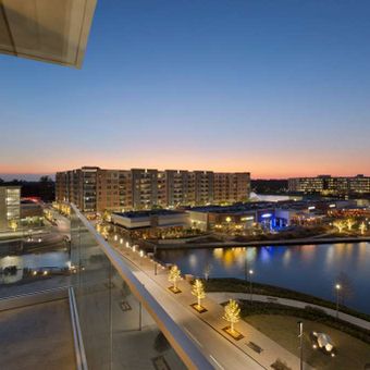 O hotel fica em Hughes Landing, uma área projetada para misturar trabalho, lazer e moradia que influencia como os visitantes passam o tempo. As pessoas desfrutam de caminhadas à beira da água, jantam em restaurantes próximos e aproveitam os jardins bem mantidos e os caminhos arborizados do bairro.