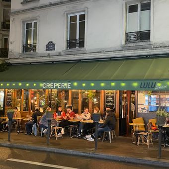 Lulu la Nantaise e um restaurante perto do Canal Saint-Martin que oferece crepes bretonas feitas com trigo sarraceno organico e galettes salgadas. O espaco com paredes de pedra e um terraço com vista para o canal cria um ambiente simples e acolhedor.