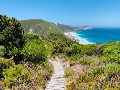 Bald Head ergue-se no final da península Flinders, com formações graníticas e caminhos que dominam o Oceano Antártico e King George Sound.