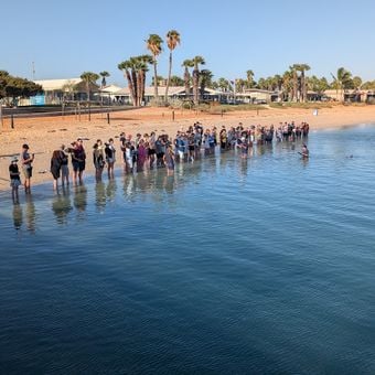 O nome Monkey Mia se refere a uma pequena baía que atrai habitantes locais e visitantes há gerações. Os golfinhos que aparecem regularmente aqui têm um significado especial para a comunidade, que aprendeu a observar e proteger esses animais sem perturbá-los.
