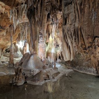A gruta foi descoberta em 1955 quando um rapaz seguiu um pássaro e caiu numa fenda rochosa. Após este descobrimento acidental, os trabalhadores começaram a explorar o espaço subterrâneo e mais tarde abriram-no aos visitantes.