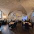 O restaurante apresenta duas salas de jantar decoradas com abóbadas do século XIII e oferece um pátio privativo sombreado para refeições ao ar livre.