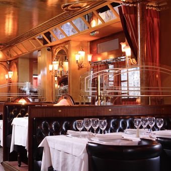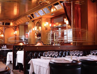 Sébillon oferece culinária francesa tradicional em um ambiente dos anos 1930 com elementos de madeira, espelhos de época e iluminação acolhedora, acomodando até 130 comensais em seu salão climatizado.