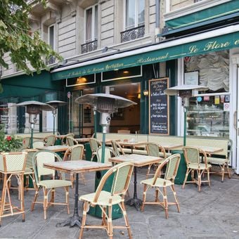 Le Flore en l'Isle é um restaurante no 4º arrondissement de Paris, ao longo do Sena. O interior apresenta mesas de madeira e cadeiras clássicas em espaços decorados de forma simples com vista para a água e acesso a um terraço com assentos ao ar livre.