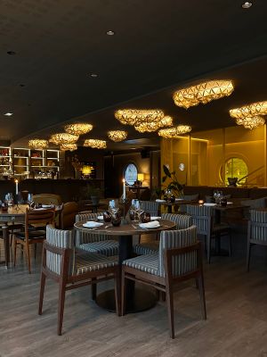 O restaurante se destaca pela decoração interior que evoca casa de caráter e proximidade com o verde do parque, oferecendo escape do ritmo da capital.