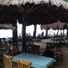 Os clientes podem pedir piña coladas servidas dentro de abacaxis frescos enquanto sentam em mesas de madeira na areia.