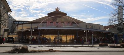 O Circus Krone é um local permanente situado em Maxvorstadt, Munique, com uma grande estrutura abobadada de tijolos vermelhos e uma entrada que lembra a arquitetura histórica de teatros. A arena interior está organizada em forma circular, com fileiras de assentos que sobem em direção ao teto e um picadeiro no centro onde se apresentam artistas, animais e palhaços.