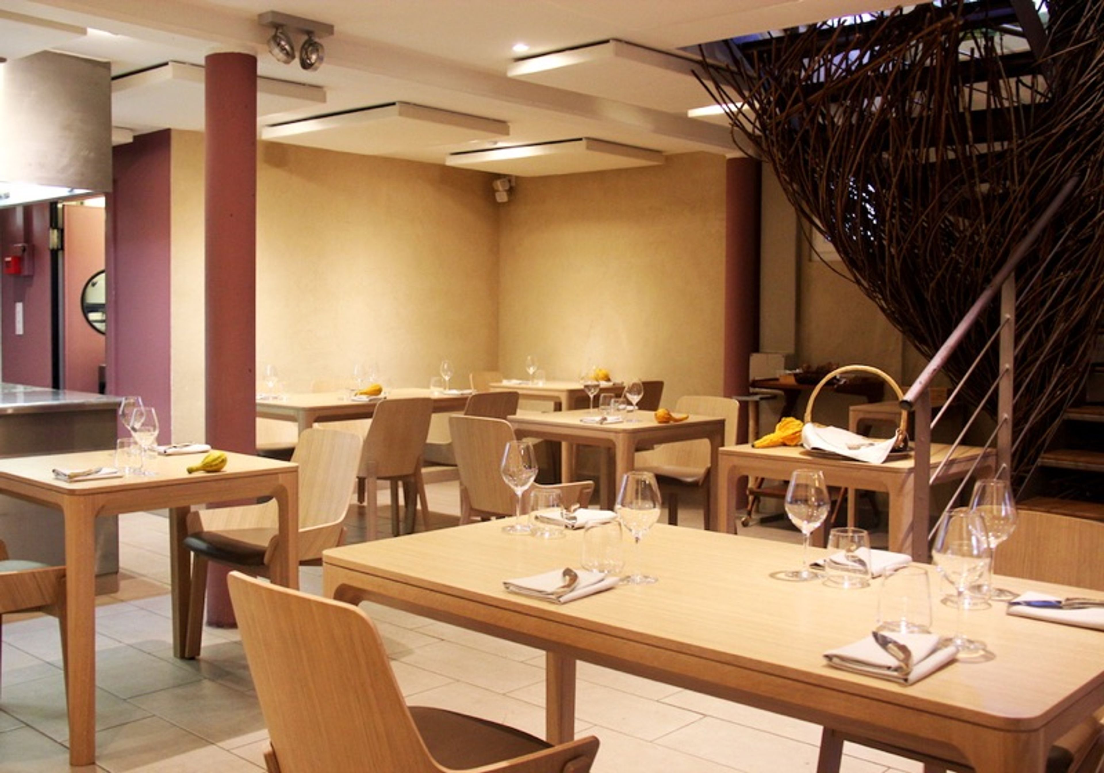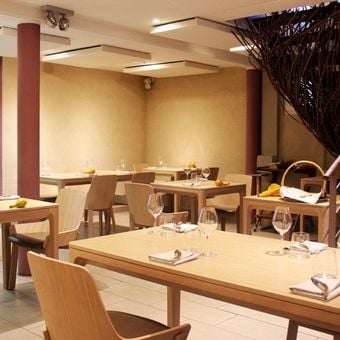 O restaurante ocupa um edifício tradicional de 1700 no centro de Quint-Fonsegrives, mantendo seus elementos arquitetônicos originais.
