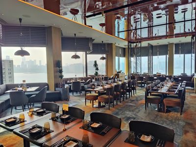 Cruise Restaurant & Bar, Restaurante no terraço do Hyatt Centric Victoria Harbour, Hong Kong.