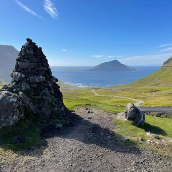 A passagem de montanha eleva-se a 270 metros acima do nível do mar, oferecendo vistas diretas do vale Norðradalur e da ilha desabitada de Koltur.