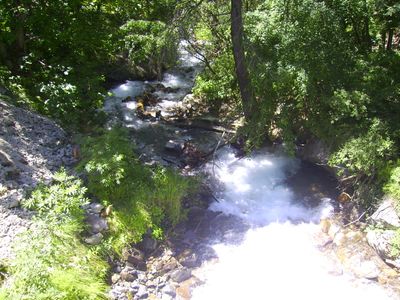 A cachoeira de Vens desce pelo terreno rochoso ao lado da estrada D64, criando uma característica aquática modesta mas graciosa que flui do terreno montanhoso acima de Saint-Étienne-de-Tinée em direção ao vale abaixo.