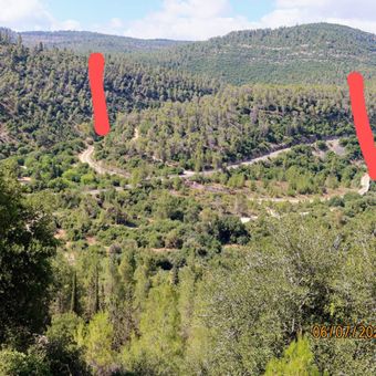תצפית על מפגש הנחלים של נחל שורק שמגיע מעין כרם עם נחל רפאים שמגיע מקניון מלחה ירושלים