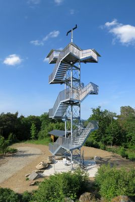 A Aussichtsturm Spitzer Stein é uma torre de madeira construída em 2003, com plataformas em ângulo e grades metálicas, localizada em área arborizada.