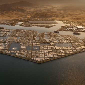 A cidade está planejada para abrigar a maior estrutura industrial flutuante do mundo. Esta plataforma servirá não apenas como espaço de trabalho, mas também como área pública que repousa diretamente sobre a água.