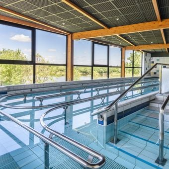 A instalação é fácil de alcançar com amplo estacionamento para visitantes. Traga um traje de banho, toalha e sapatos de água, pois estes são necessários para usar as piscinas e áreas de tratamento.