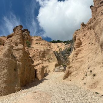 O início de Lame Rosse é uma trilha de caminhada no Parque Nacional dos Sibillini localizado no Vale do Fiastrone acima do Lago de Fiastra na região de Marche. A trilha começa na barragem e percorre aproximadamente 3,5 quilômetros em subida através de uma floresta de carvalhos para chegar às formações de rochas vermelhas feitas de cascalho, argila e silte que criam torres e agulhas.