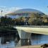 A Riverbank Precinct Pedestrian Bridge é uma travessia de pedestres em Adelaide que atravessa o rio Torrens e conecta distritos artísticos. A estrutura com cerca de 75 metros tem uma forma elegantemente curva com suportes em forma de V e é revestida com mais de 3000 painéis de vidro que refletem a luz e criam interessantes efeitos de luz em dias ensolarados.