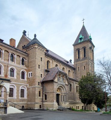 A igreja foi construída durante o período do Revival Renascentista e foi administrada por muito tempo por monjas beneditinas. Após o estabelecimento da República Checoslovaca, as freiras partiram e se mudaram para a Áustria.