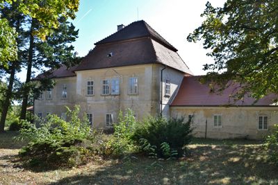 O castelo foi construído em 1770 pelo mosteiro de Rajhrad e inicialmente funcionou como pavilhão de caça e centro administrativo para a gestão florestal próxima. Após décadas sob controle estatal, foi devolvido à comunidade beneditina em 2015.