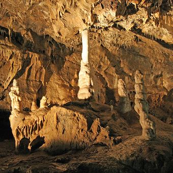 Cinco cavernas principais oferecem acesso público, com as Cavernas Punkva proporcionando passeios de barco ao longo de um rio subterrâneo.