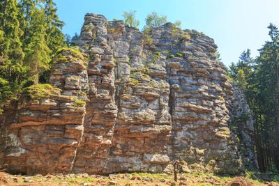 Bílá skála é um afloramento rochoso branco no Parque Natural Žďárské vrchy localizado ao longo de uma crista que domina a floresta circundante. As rochas expostas exibem uma coloração clara e distintiva devido à sua composição de migmatita gnaisse, destacando-se entre as formações geológicas mais escuras próximas.