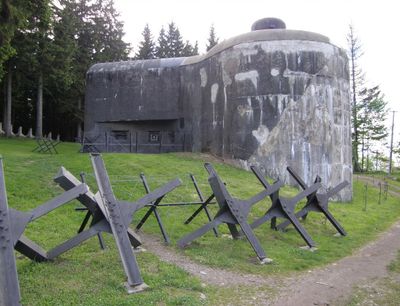 A construção desta instalação começou no final dos anos 1930, mas foi paralisada quando as tensões europeias se intensificaram em direção à Segunda Guerra Mundial. A estrutura nunca se tornou totalmente operacional e permaneceu como relíquia daquele período turbulento.