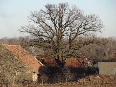Dub letní za bývalou kovárnou v Pitkovičkách, memorable tree in Hl.m. Praha District, Czech Republic