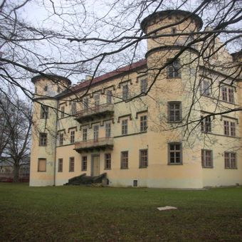 O edifício situa-se ao lado da Igreja de São Martinho, formando um complexo histórico que domina o riacho Skrivan nas montanhas Krušné hory.