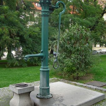 Piston water pump on Hradčany Square, památkově chráněná pumpa v Praze