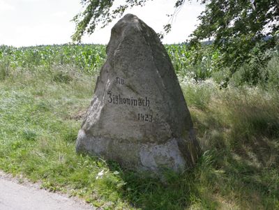 Památný kámen osvobození v roce 1945 u pomníku padlých v Jihlávce