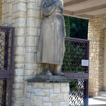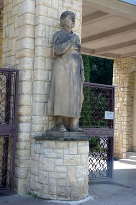 Socha před pohřebním ústavem u Plzeňské ulice v Praze, statue in Motol, Czech Republic