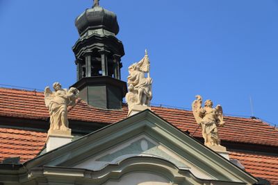 Sochy svatého Václava a andělů na štítě zámku v Ďáblicích, statue in Ďáblice, Czech Republic