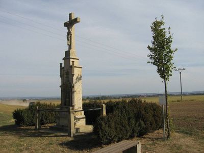 Pamětní "Šrámův" kříž u silnice na východním okraji Rozběřic, pamětní kříž v obci Všestary, okres Hradec Králové