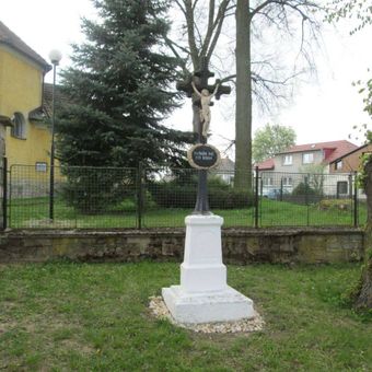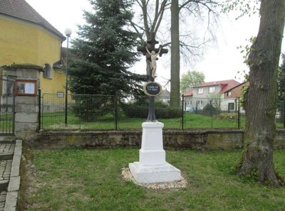 Kříž v Libkově Vodě u kostela, pamětní kříž v obci Libkova Voda, okres Pelhřimov