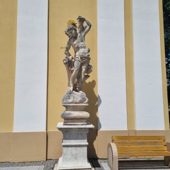Socha Svatého Šebestiána u kostela na Masarykově náměstí v Hodoníně, statue in Hodonín, Czech Republic