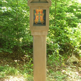 Křížová cesta na Mařském vrchu, zastavení číslo I, boží muka v obci Svatá Maří, okres Prachatice