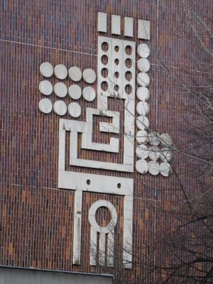 Plastika u domu U plynárny 14 v Michli