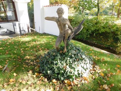 Plastika na nádvoří Sovových mlýnů na Kampě