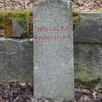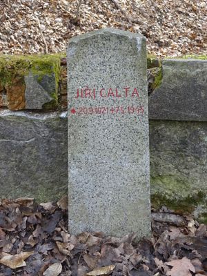 Pomník Jiřího Calty padlého v květnu 1945 na mostku v Modřanské rokli v Komořanech