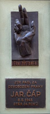 Pamětní deska Jar. Čápa na domě Karlova 145/25 v Praze, pamětní deska v Praze