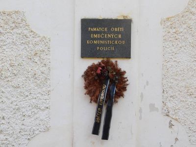 Pamětní deska obětí umučených komunistickou policií v Kapucínské ulici v Praze