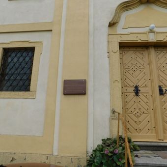 Pamětní deska Františka Kolandy na kostele v Bochově, pamětní deska v okrese Karlovy Vary