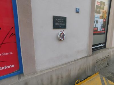 Pamětní deska Zdeňka Hellmana na domě Na hutích 342/5 v Dejvicích