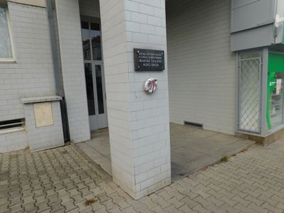 Pamětní deska Milušky Šulcové a Aloise Kally na domě Zelená 1570/14a v Dejvicích
